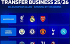 夏窗后球隊(duì)身價(jià)跌榜:勒沃庫森跌2.53億歐,萊比錫第二1.7億