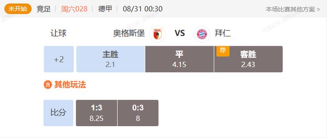德甲意甲解析:奧格斯堡VS拜仁,比薩VS羅馬串關(guān)解析